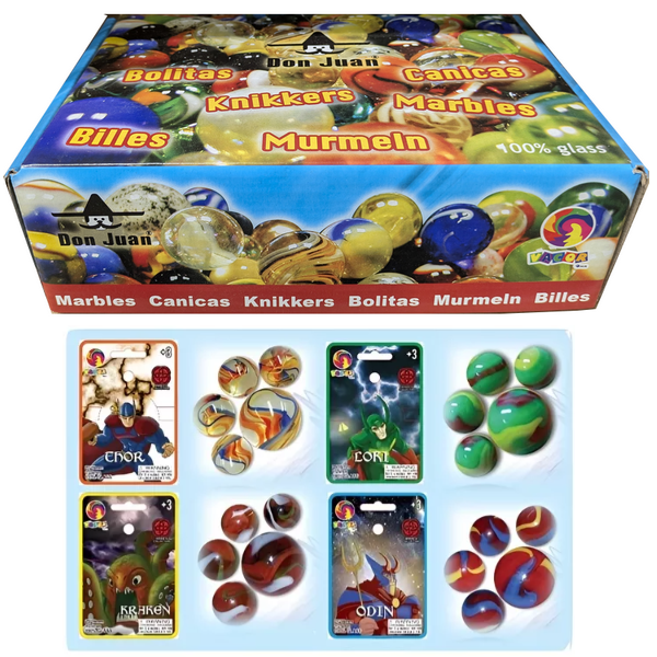 Inhoud : 4 verschillende soorten knikkers. Van ieder soort 5 netjes, is 20 netjes in totaal.